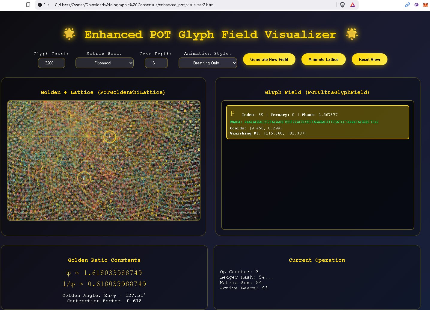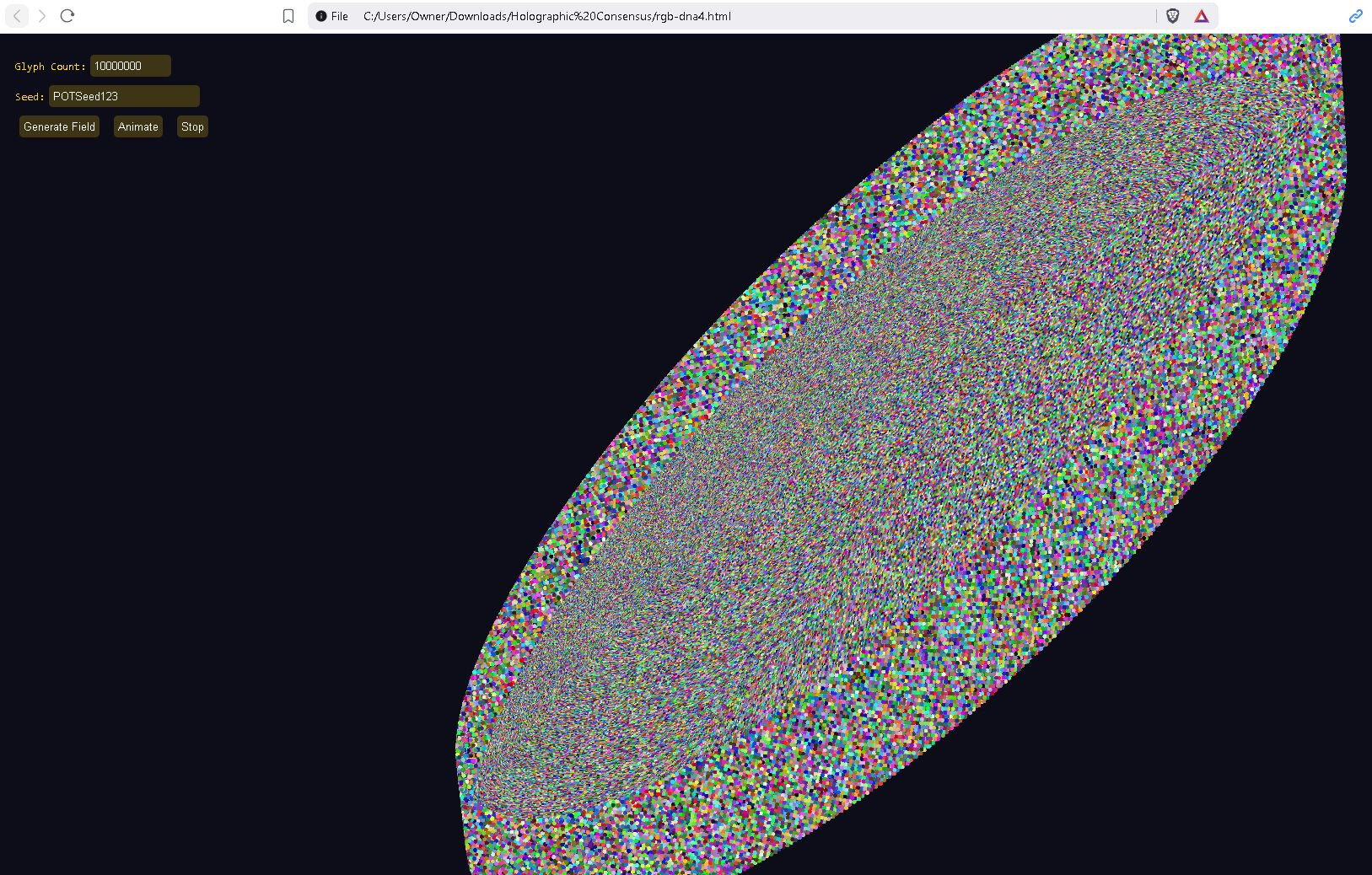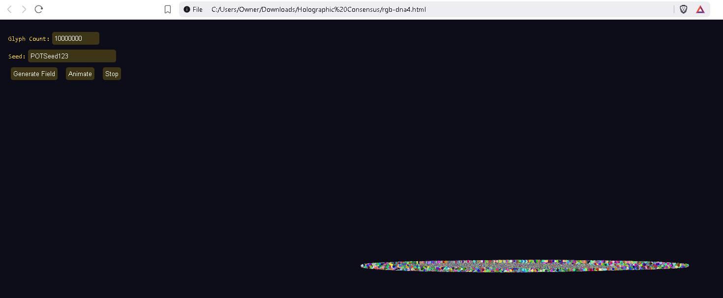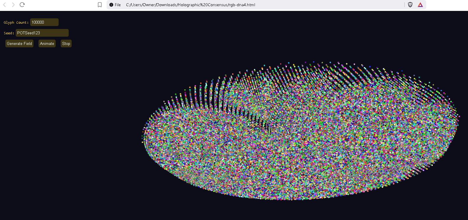This is a quantum + recursive holographic mutable glyph communication system POC (proof of concept). It leans upon my recursive physics + a dash of quantum physics. I really don’t subscribe to much of quantum, but I like the tamper-evidence built into some quantum concepts. Each message must be short or a very large set of glyphs is necessary, but you will be able to stack short messages in version 2 up to and including the ability to stream video and to share a mutable glyph ball with others (channels). The idea is your environment, the space between two radios, is mapped and overlayed by our glyphs, modulated (optimally), and the result is hopefully a successful message. So the assembly forms a shape for good reason on its own it often prefers to assume a helix floating in space, pretty soon the environment will replace the virtual environment and this shape will take on aspect of the environment. Modulation.