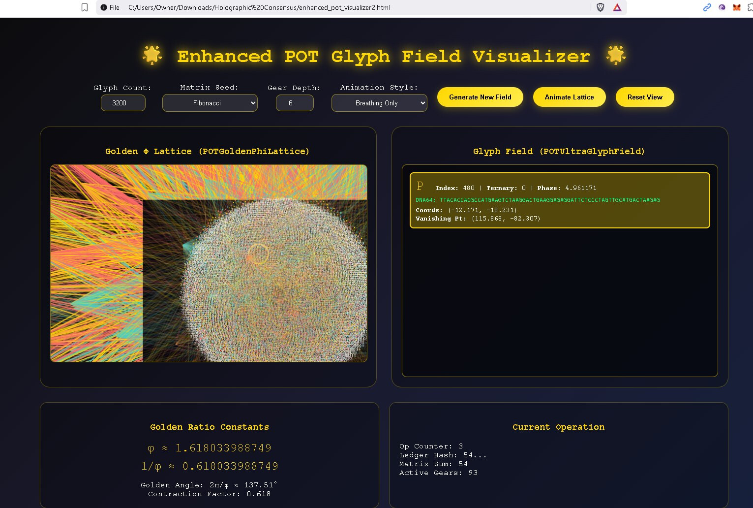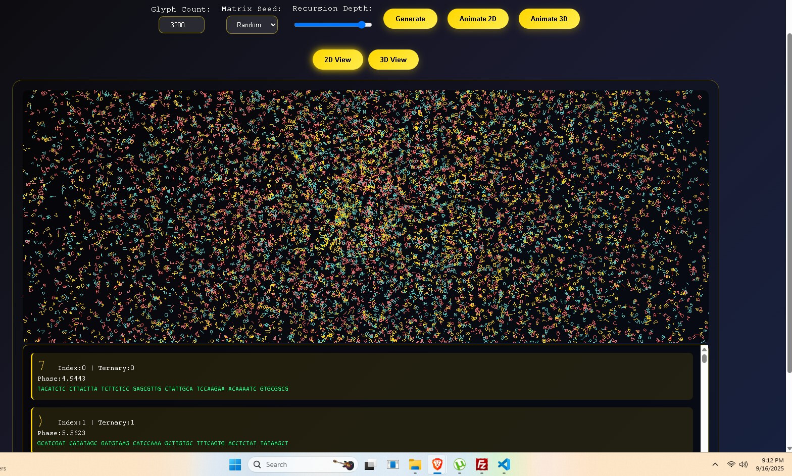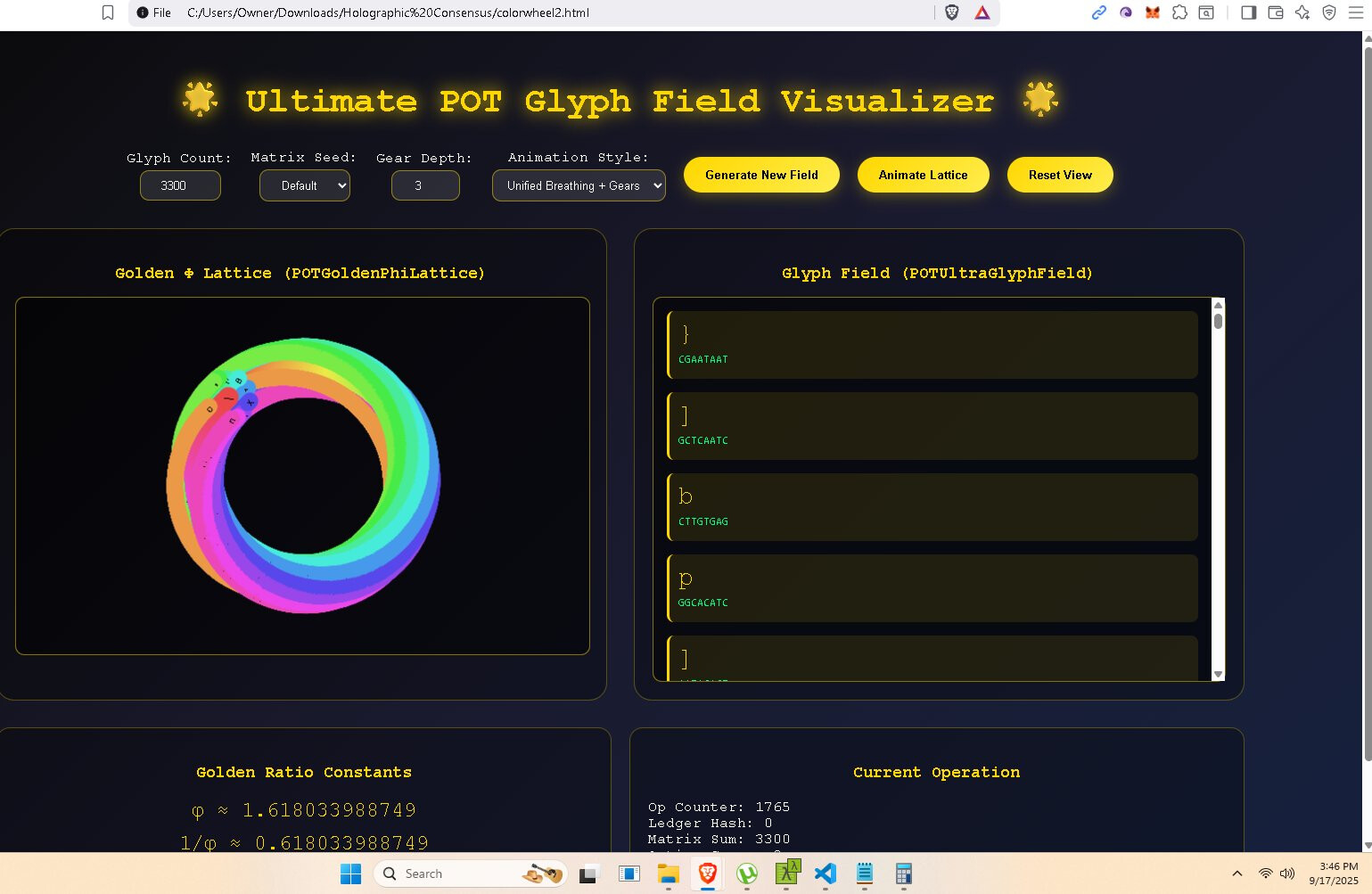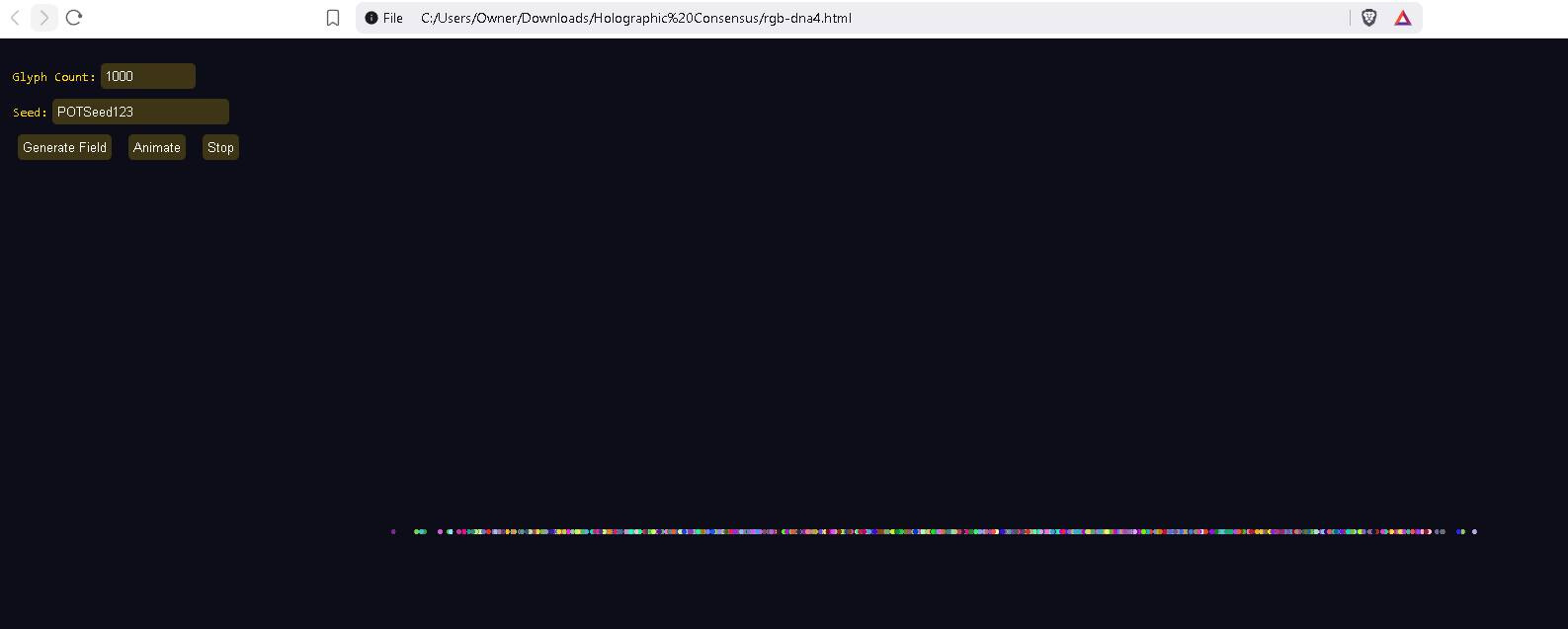 This is a quantum + recursive holographic mutable glyph communication system POC (proof of concept). It leans upon my recursive physics + a dash of quantum physics. I really don’t subscribe to much of quantum, but I like the tamper-evidence built into some quantum concepts. Each message must be short or a very large set of glyphs is necessary, but you will be able to stack short messages in version 2 up to and including the ability to stream video and to share a mutable glyph ball with others (channels). The idea is your environment, the space between two radios, is mapped and overlayed by our glyphs, modulated (optimally), and the result is hopefully a successful message. So the assembly forms a shape for good reason on its own it often prefers to assume a helix floating in space, pretty soon the environment will replace the virtual environment and this shape will take on aspect of the environment. Modulation.