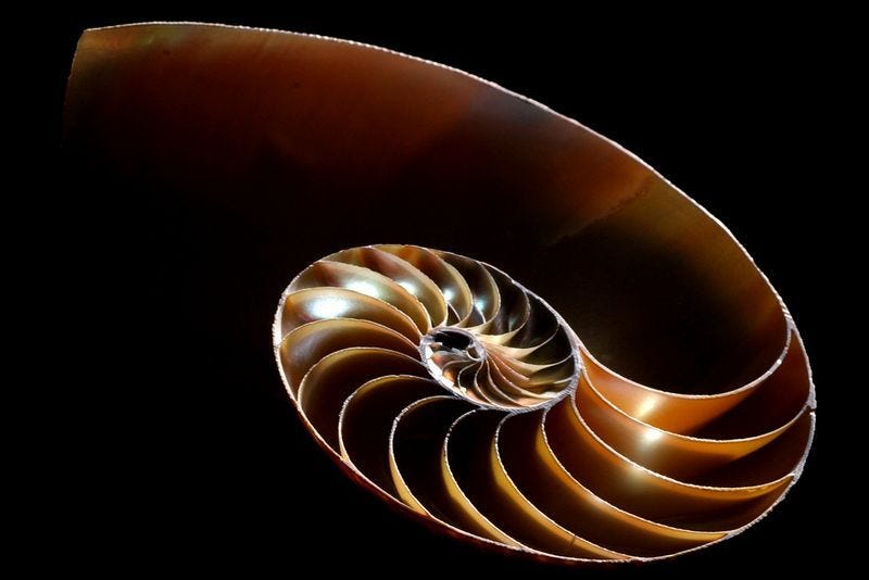 Nautilus-shaped speaker (acoustic/EM resonance analog).