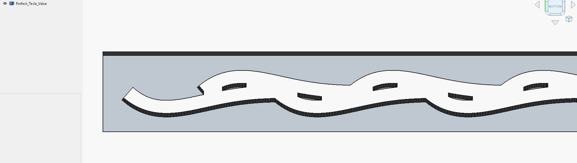 A classic Tesla valve is built from repeating asymmetric flow cells. Each cell has: