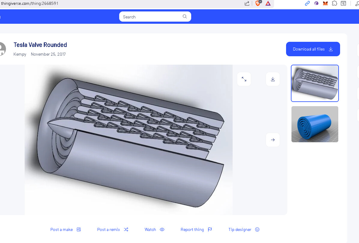 - For cylindrical/spinning feel: Start with the related cylindrical Tesla valve STL (GrabCAD has a good one: Free CAD Designs, Files & 3D Models | The GrabCAD Community Library) and blend in nested elements.