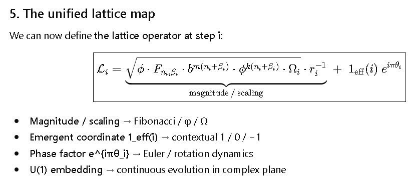 - Together, this forms **a lattice operator with phase, scaling, and emergent coordinate**.